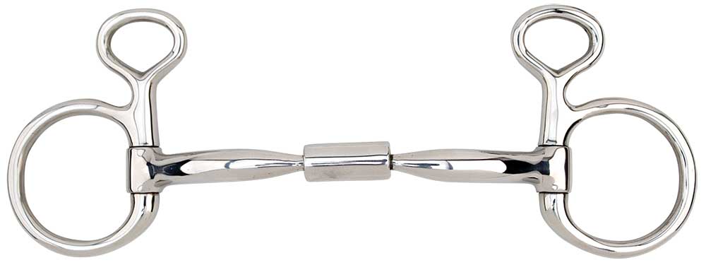 The MB02 is the Myler alternative to the traditional French link or lozenge mouthpiece commonly used in snaffle bits. The MB02 rotates onto the tongue, applying tongue pressure, but because the mouthpiece is curved, it wraps around the bars and lips instead of pinching. The barrel in the center applies approximately the same pressure on the tongue as a traditional three-piece mouthpiece, however, the barrel distributes the pressure more kindly and creates Independent Side Movement™.